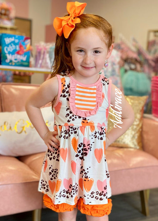 Cream Dress with Printed Hearts and Leopard Ruffle Bib