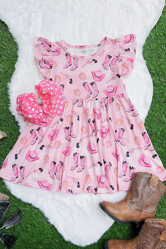 Cowgirl Pink Flare Dress W/ Angel Sleeves