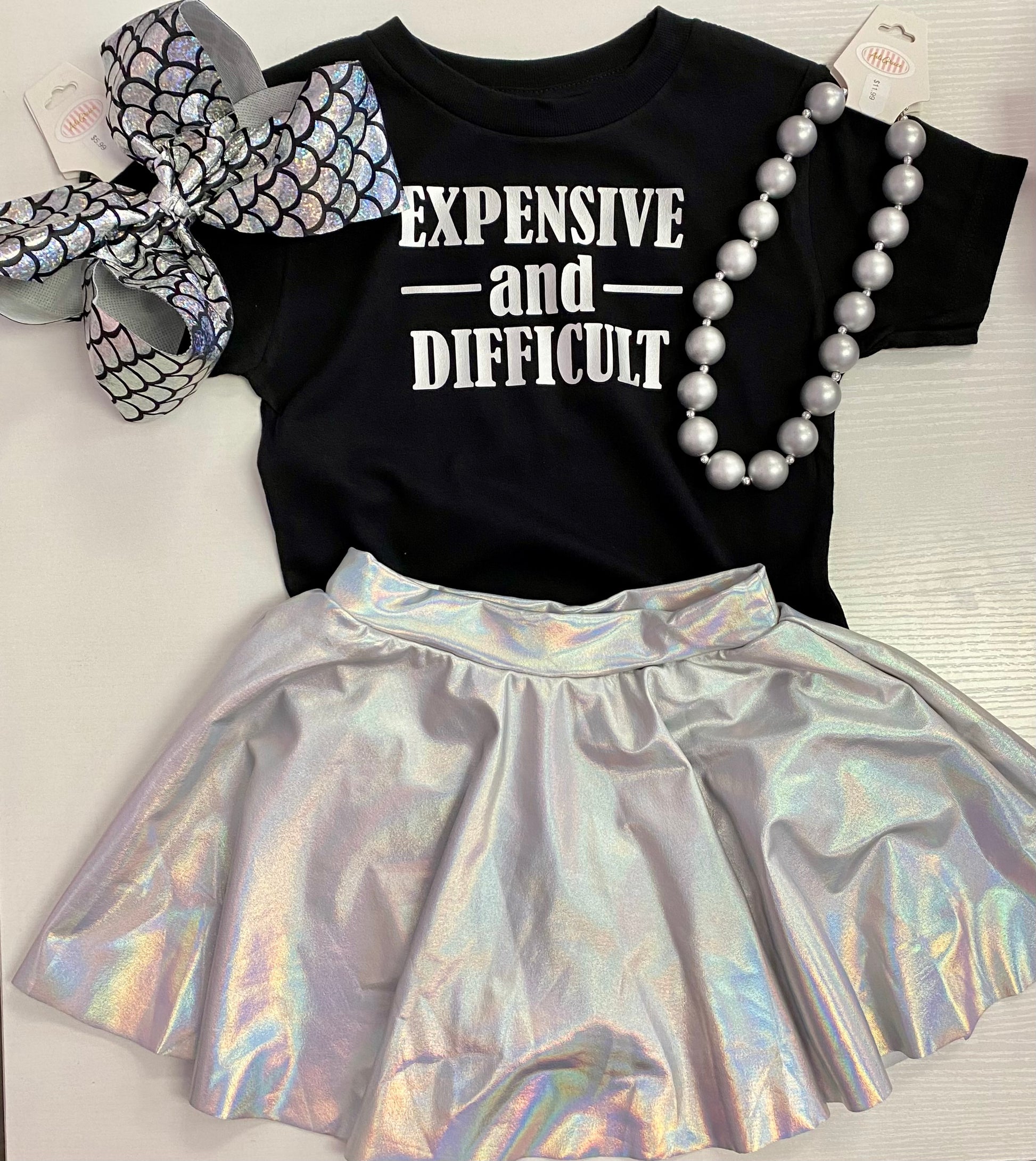 Love these girl's metallic skorts in iridescent platinum with sewn in bloomers.